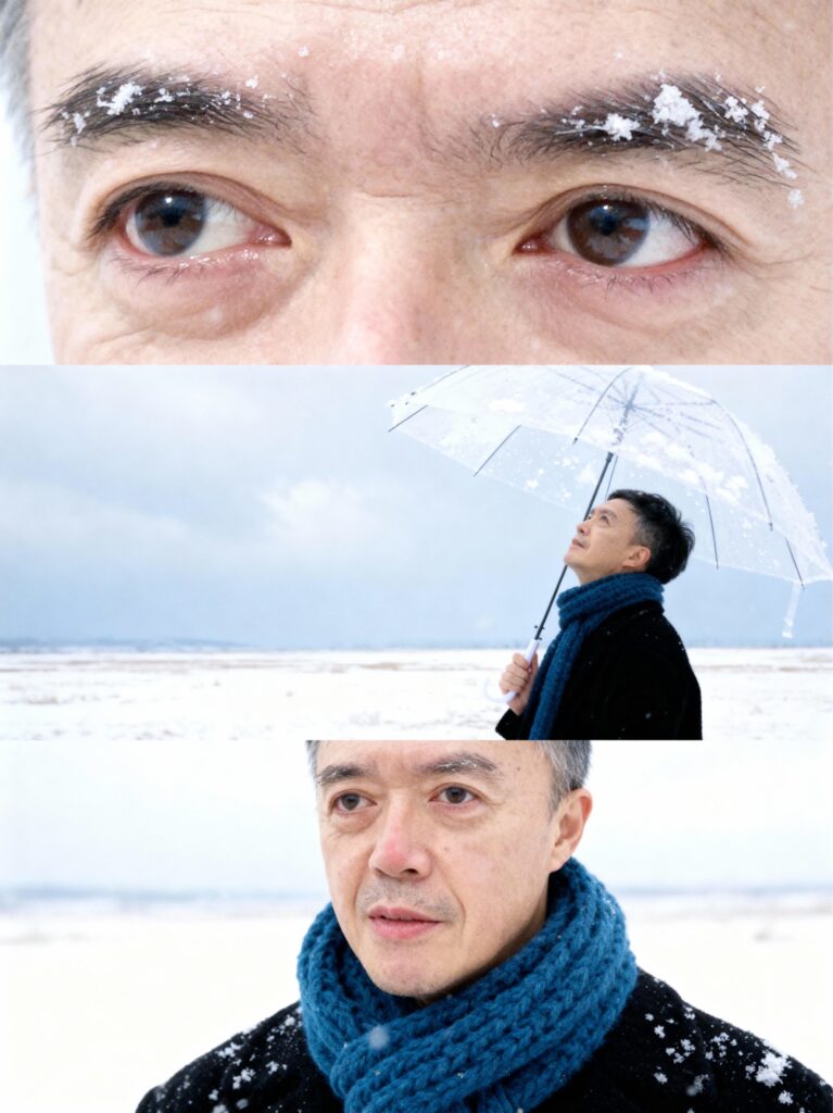 朋友做這張老人版冬季戀歌,還挺自然。各種紋路斑點眼袋白髮畢現。
