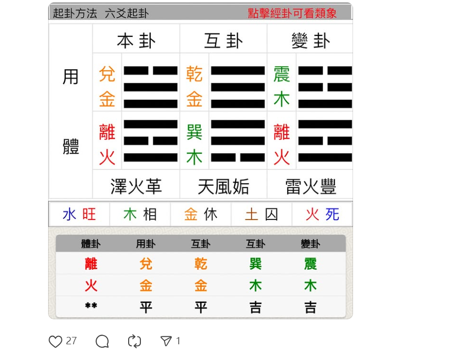 坊間命理師談值年卦(如2025是澤火革卦),也沒人兼談之卦(變卦)。