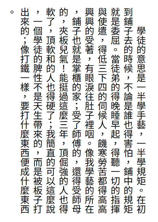 「一半學手藝,一半學規矩」,真是金句。現在哪有地方讓你學規矩?連小學都不容易「教規矩」、要處處「以客為尊」了。