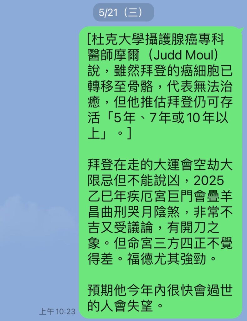 「病情受議論、會開刀、但不會過世」,八個多月前預測成功。