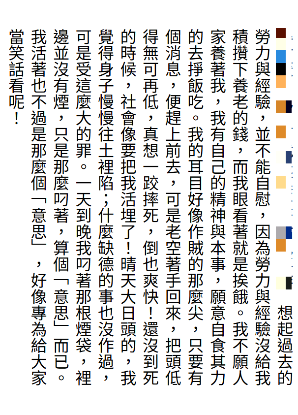 終於男主角一天天老了,生計越來越難維持。沒享到兒孫的福,負擔卻越來越大,他感嘆著: