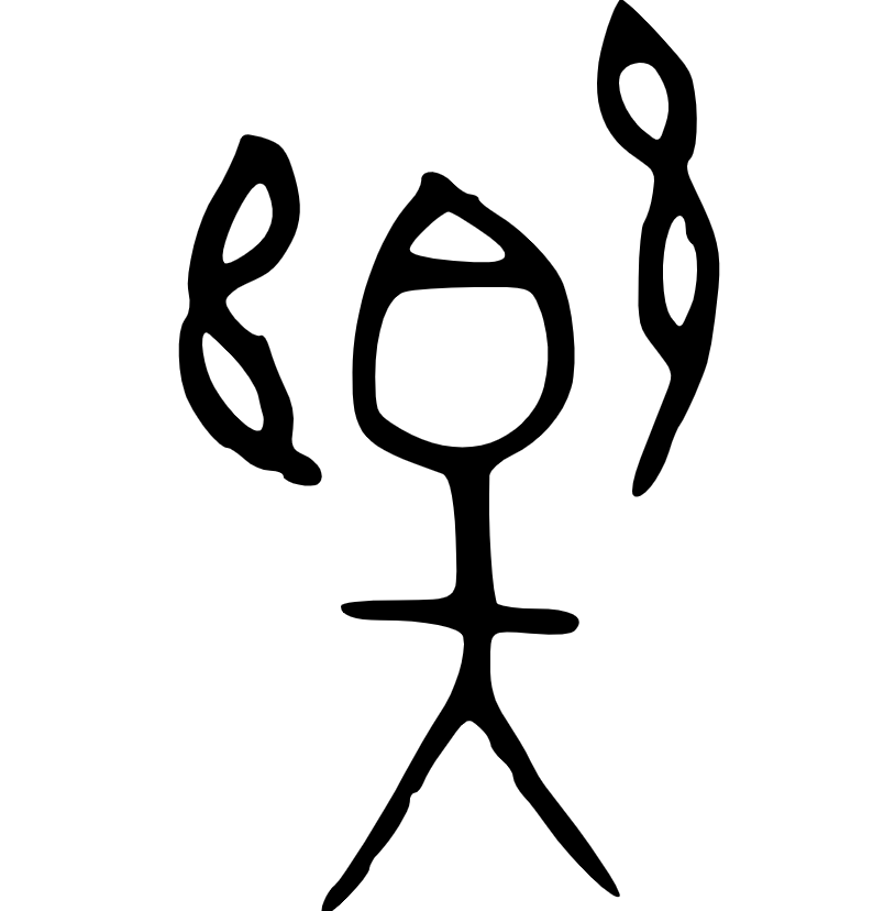 最普遍說法是下面是木架子,上面是絲弦,就是代表最早的樂器。另有一說是下面是松木,上面是松子: