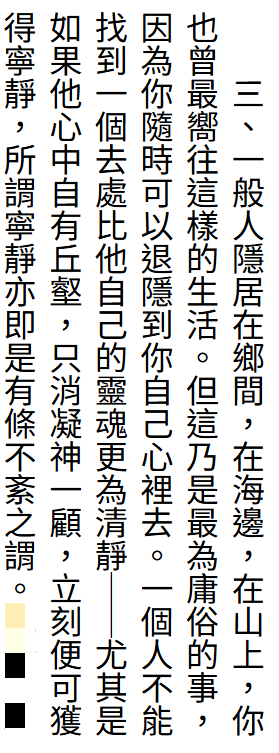 同意退隱不一定要住去鄉間、山上,但寧靜不只是馬可奧理略說的「有條不紊」這麼膚淺,有條不紊叫做整齊。