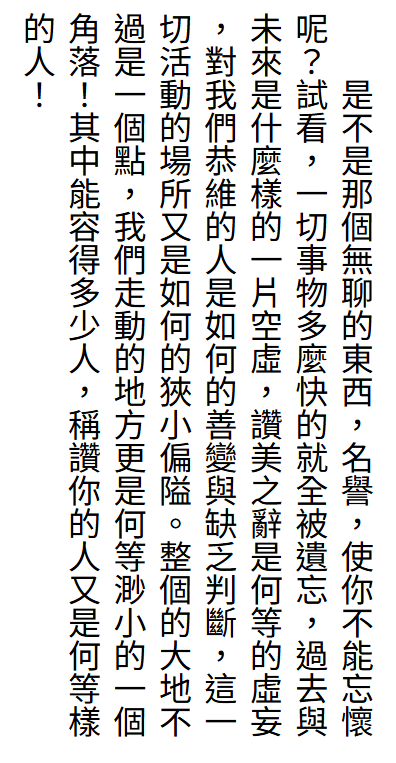 人能占有的面積實在太小了。別人的品評不是不能聽,但是你確定要把其他凡人的意見無限放大嗎?你要追求那可能隨時改變的所謂名聲嗎?