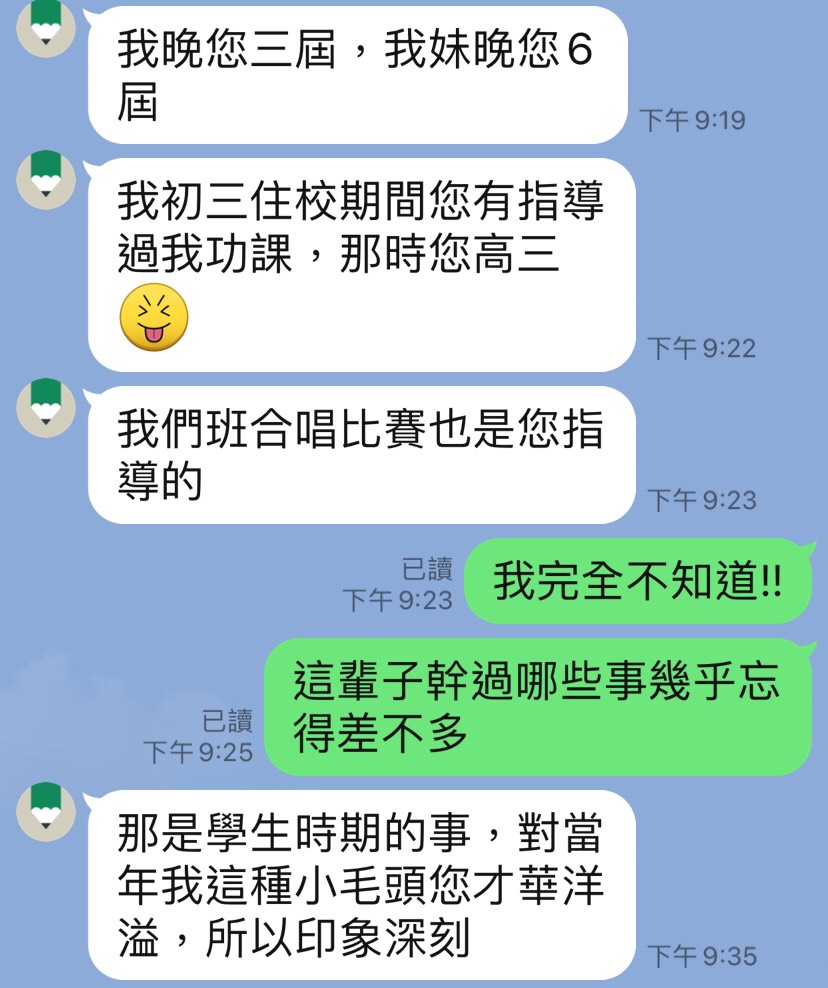 直到最近加LINE,才知我們在校內有交集: