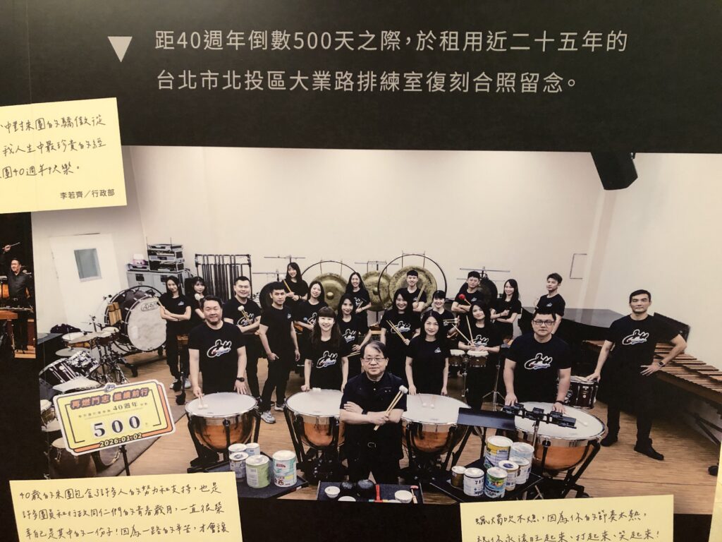 經過40年還有第一代團員、第一代行政人員,可見這是可依靠的公司團體。篳路藍縷固然有政府與民間企業支持,但朱老師本人和創團元老仍付出了最大努力,開創至今有一團、二團、近三百首委託創作、三位駐團作曲家、橫跨四代20位職業演奏家以及全台教育機構的打擊樂帝國。
