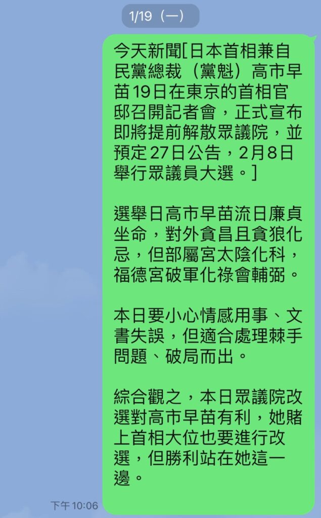 2026年1月19日,高市早苗開記者會表示準備解散眾議院提前改選當天我預言: