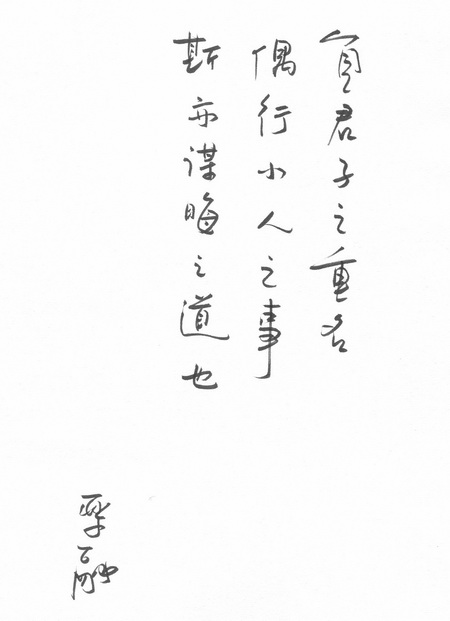 1. 即使是正人君子,偶爾也可以做無傷大雅的小人之事,畢竟皆凡人,畢竟誰都會有自己的小煩惱小個性,誰都不例外。喜歡看您手書,捺部收尾是叫蠶頭燕尾吧。@@