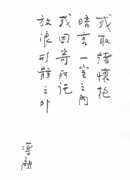 但我又想到:如真如此,那原文“悟言一室之内”是否就不该解释为“在室内(跟朋友)面对面地交谈”的意思了呢?如果是这样,那现在大陆所有的相关资料对这句的解释都是错误的了喔?