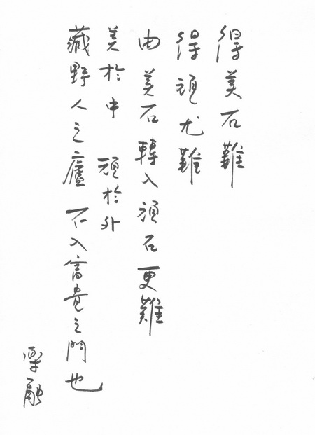 7. 在先人眼里,似顽比美的层次更高一筹。如人想做到美不难,但要做到顽的境界就大了。