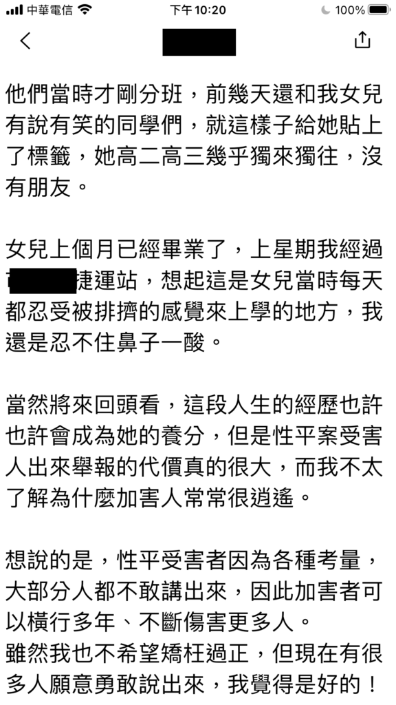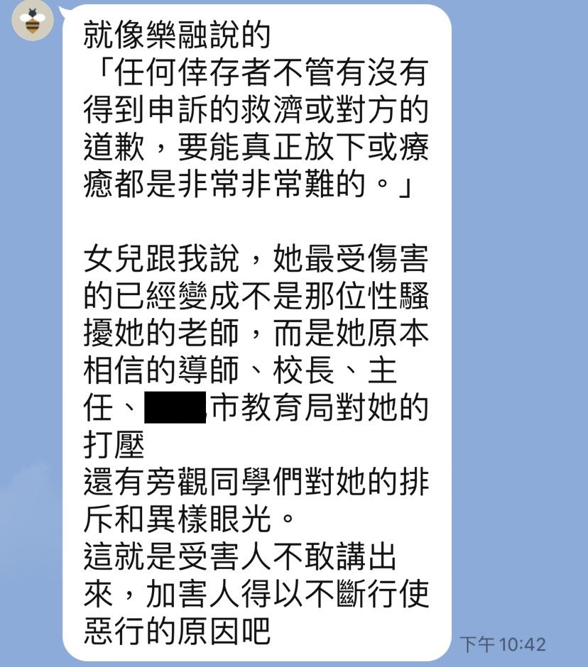 這個案例,加害者不是名人,而是普通老師。倖存者不是沒有站出來,是站出來還被體制霸凌。