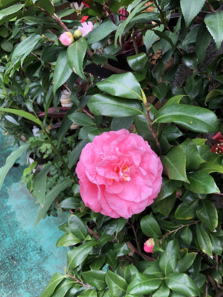 人家的山茶花,好漂亮。一開始以為是牡丹,用網路搜了才知是山茶。