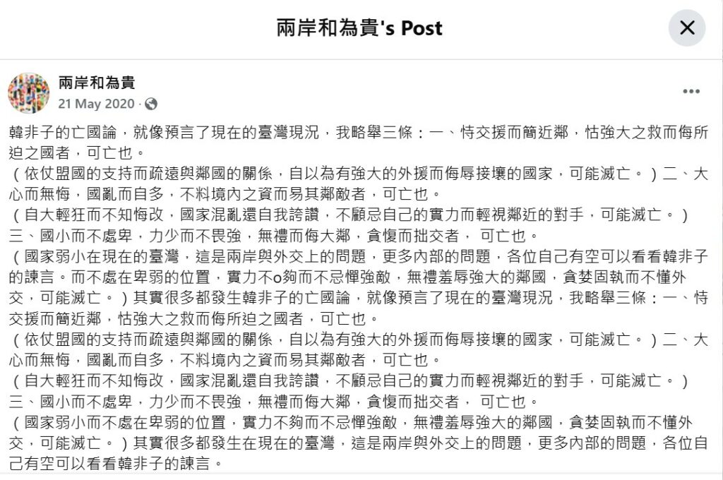 都發生在現在的臺灣,這是兩岸與外交上的問題,更多內部的問題,或可看看韓非子的諫言。
