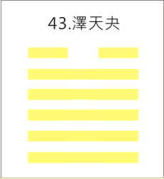 頭一個十年的旬卦是澤天夬(音怪)卦(2044-2053),一切必須有所決定了。這也應該是我能活到的極限。邵雍解為:「必須剛斷,始吉終凶,謹慎自重。凶。得此卦者,大運將過,困難將至,宜提高警惕,謹言慎行。」與同時換位的「上位集合」離卦,涵義相通。