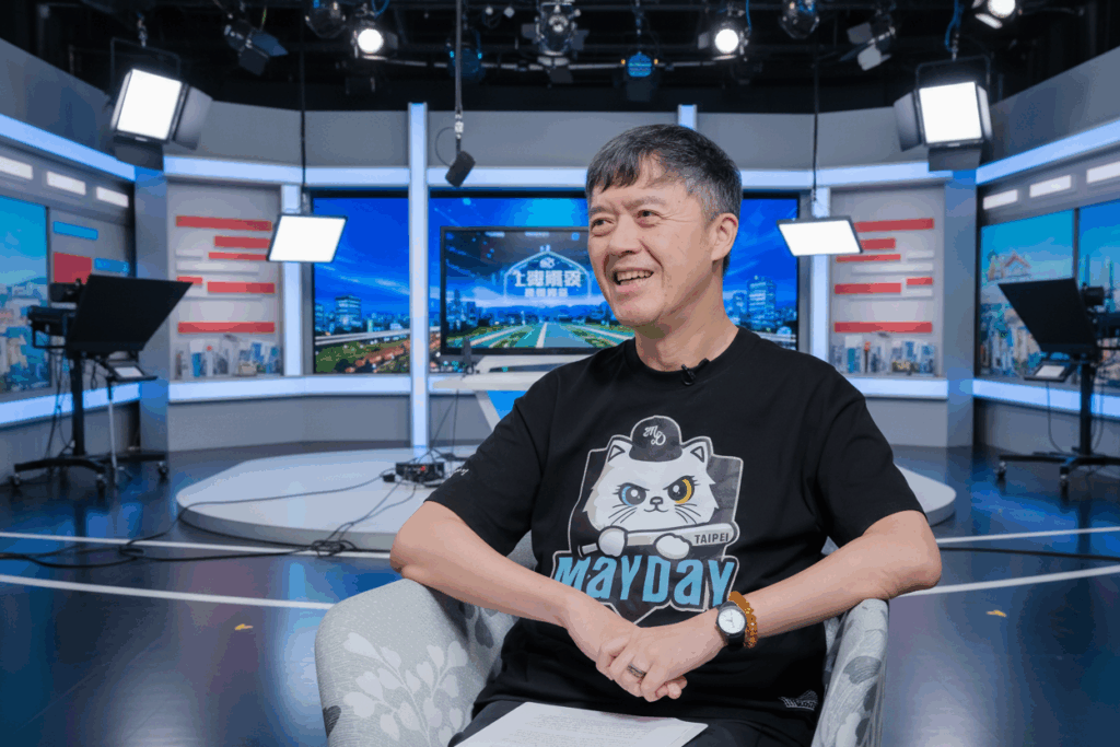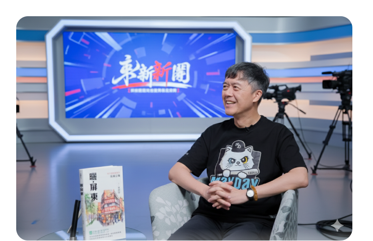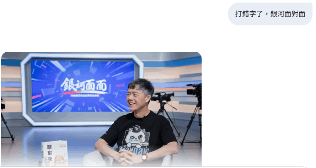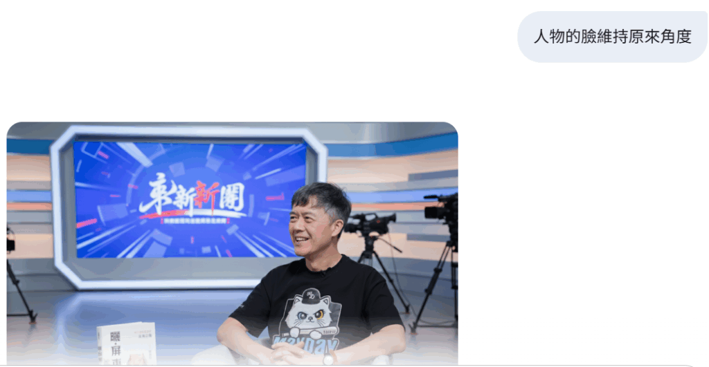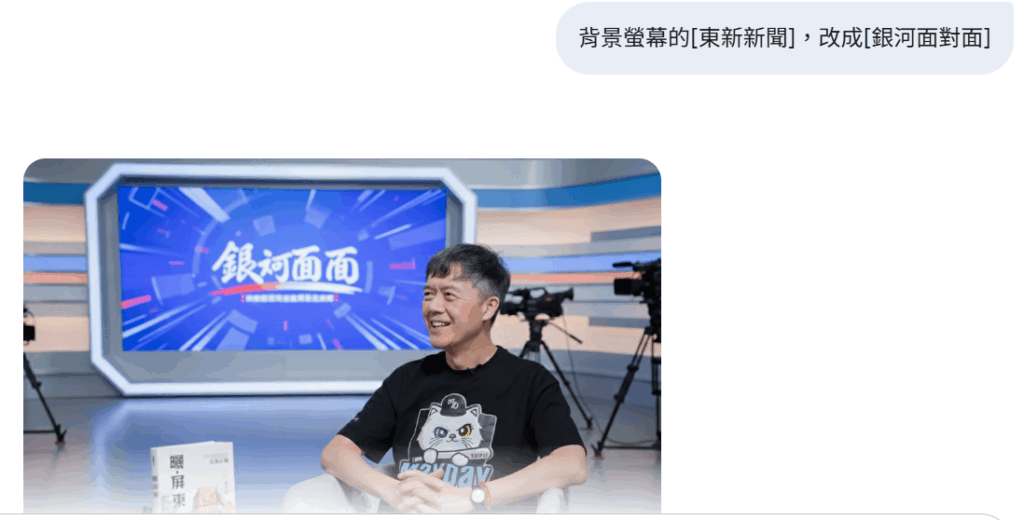 其實很假,前景很像直接P上去。再換成背景在電視台攝影棚: